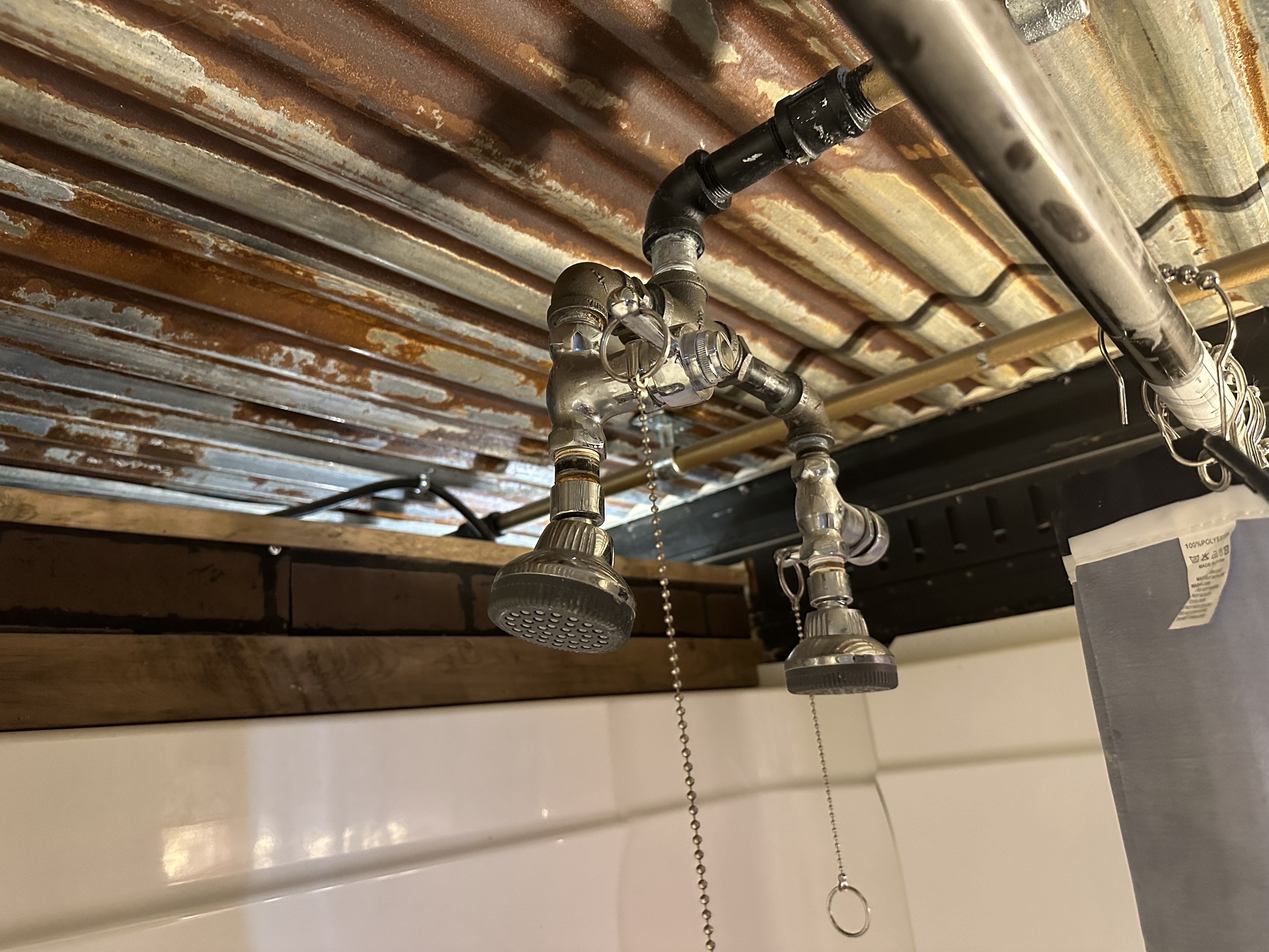 - During the fall visit to the Gayflower we took down the existing showers but we didn't have time to put up new ones.